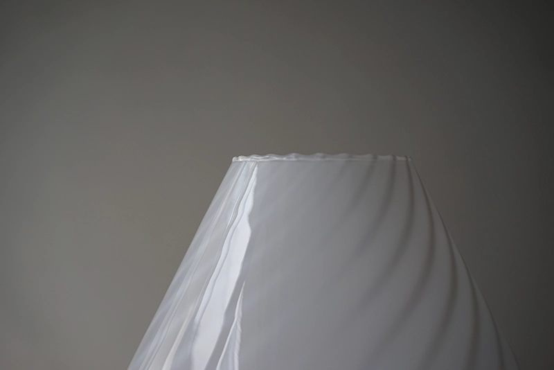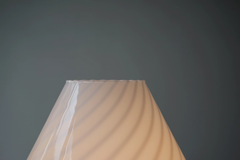 アクセントに入ったラインとトップの波打ったガラスが美しい照明です。