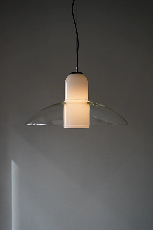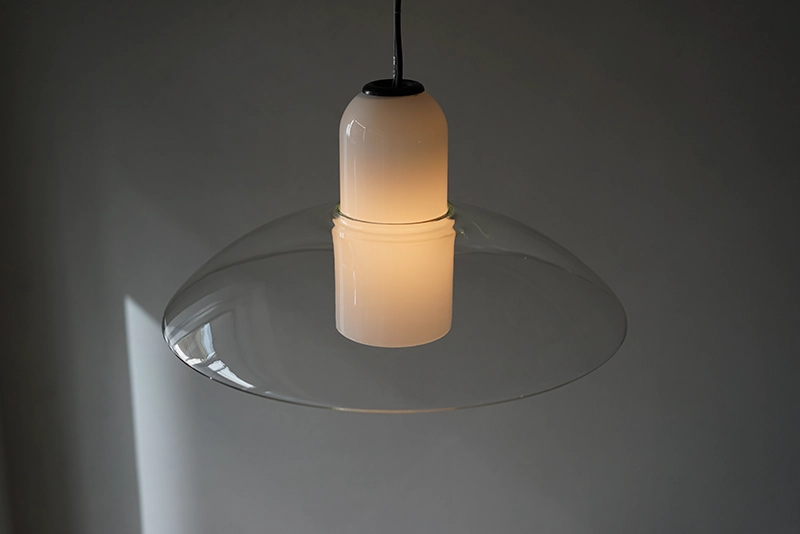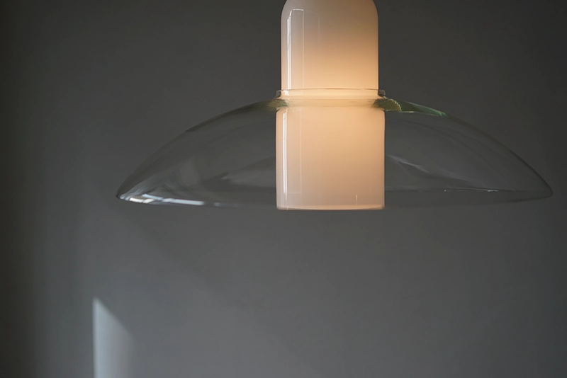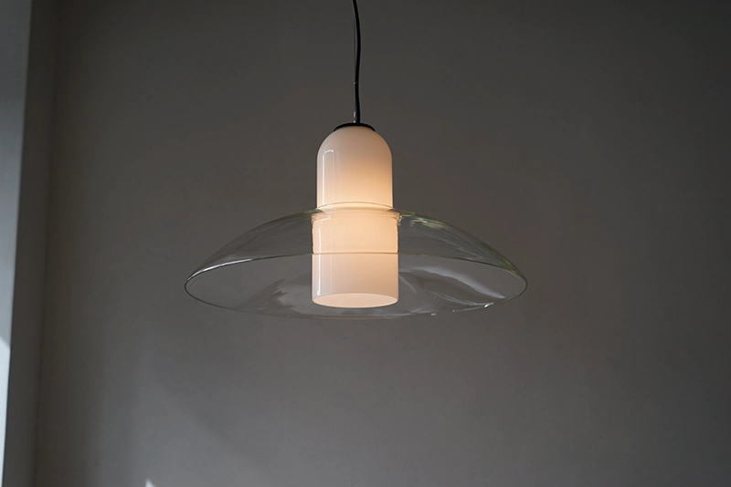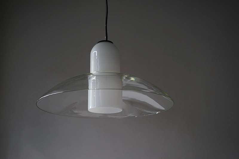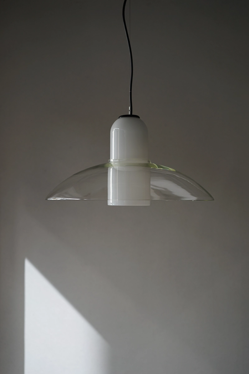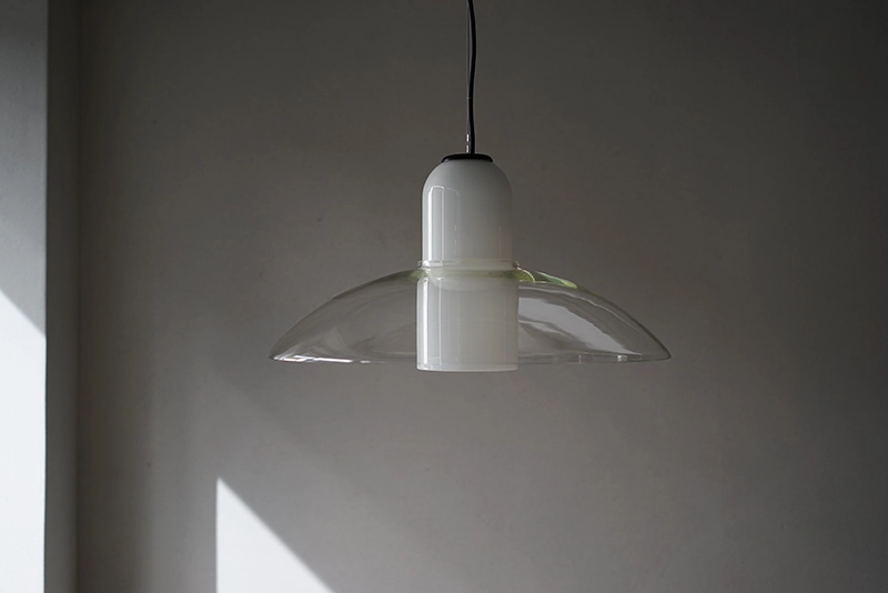 クリアガラスとホワイトガラスが重なった大変珍しい照明です。
