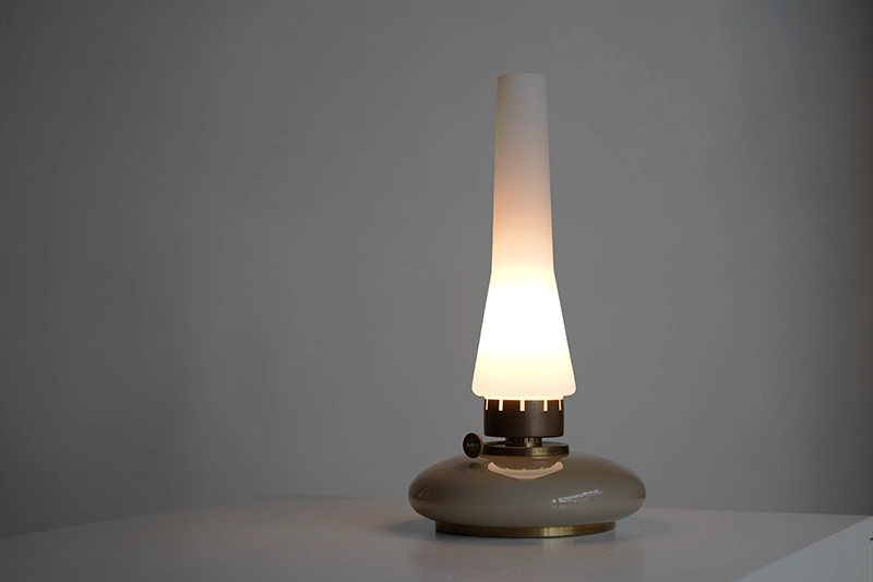 こちらは、1960年台の Venini のガラスと真鍮を使用したテーブルランプ。