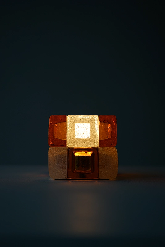 計12枚の厚手のガラスで構成されたキューブ状の照明となっています。